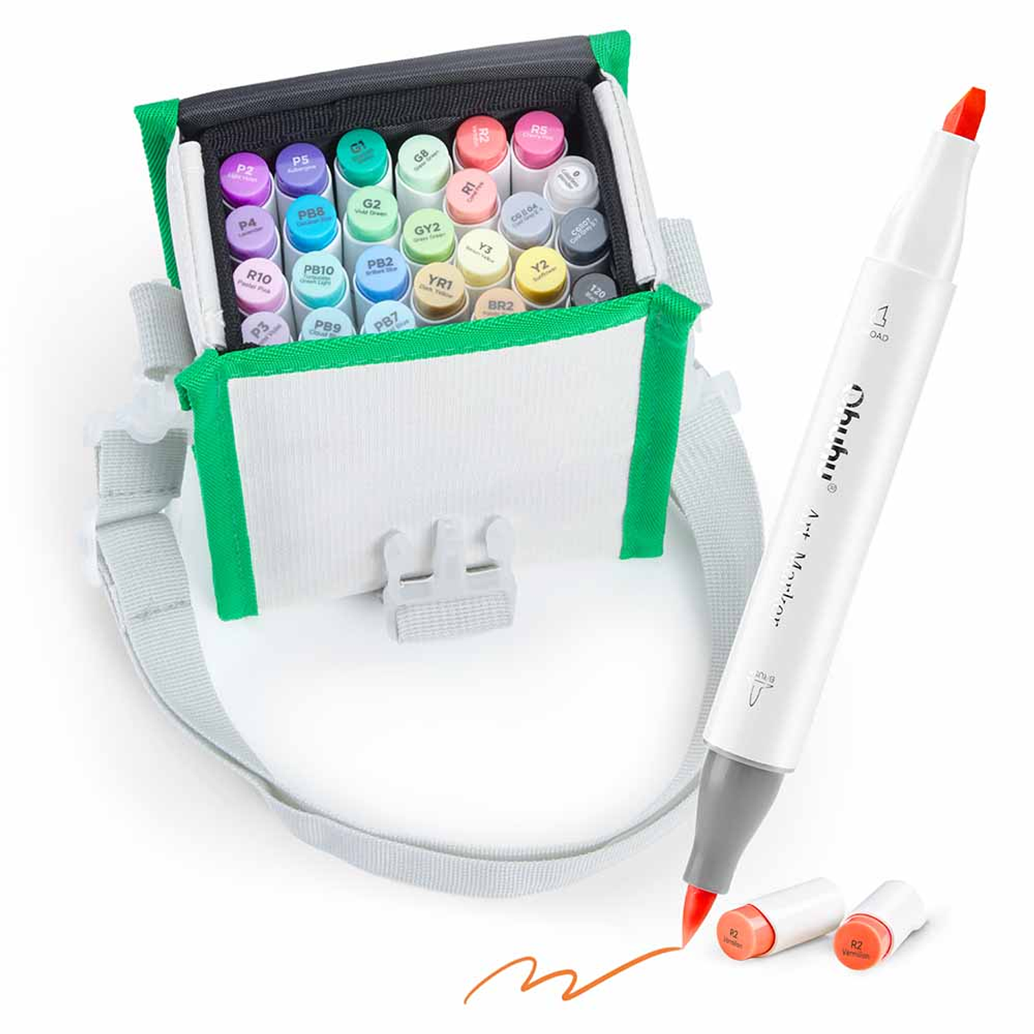 - Ohuhu - 24 Marcadores Al Alcohol - Punta Pincel/Biselada