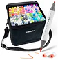 - Ohuhu Honolulu B - Set 120 marcadores de alcohol - Tonos básicos + 1 Blender - Doble punta: pincel y fina