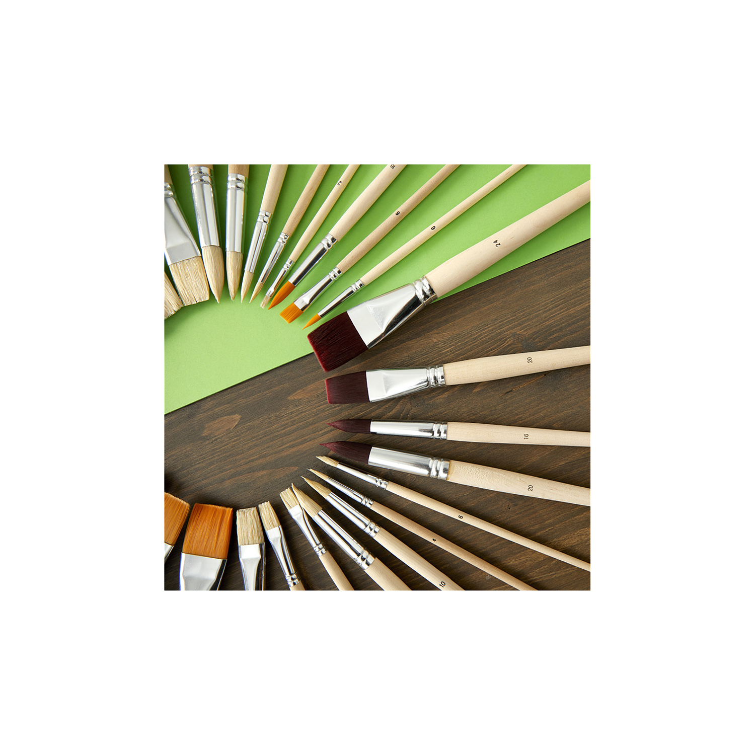 - Set 8 Pinceles: Redondos n° 0, 3, 6 10 y Planos n° 2, 6, 10 14.