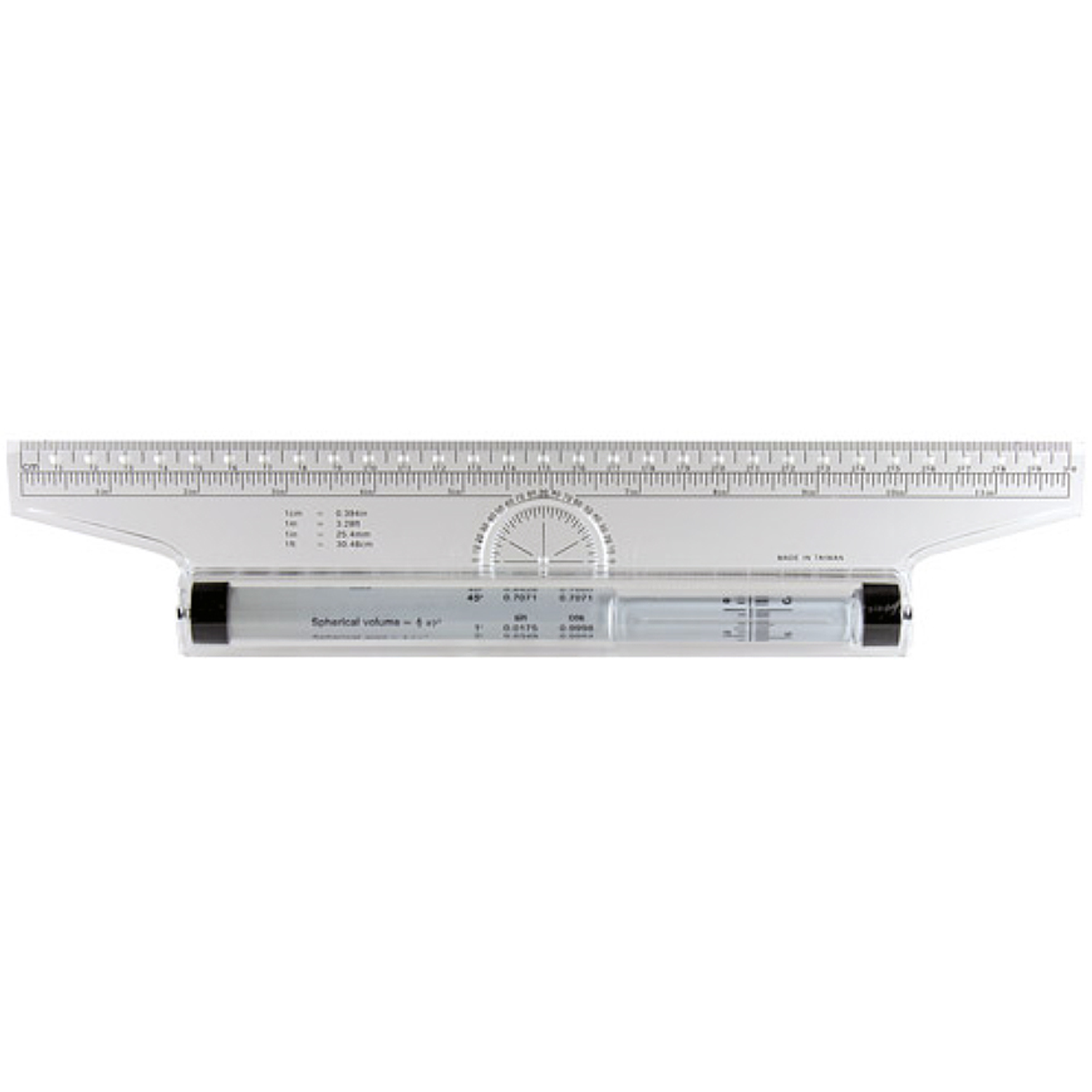 - Práctica regla de 30 centímetros que posee un tubo giratorio que permite dibujar paralelas sin necesidad de levantar la regla.
