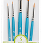 - Set incluye 5 pinceles: Fino N° 5/0, Liner Corto N° 10/0, Plano N° 6, Redondo N° 4 y Redondo N° 1.